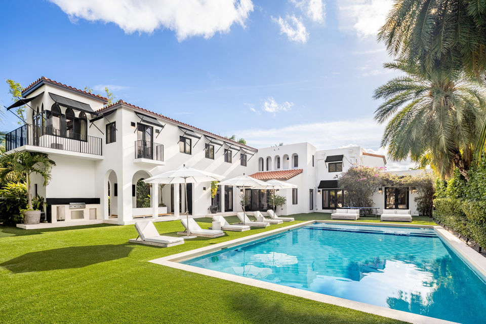 This captivating modern Mediterranean villa boasts 5 bedrooms, including a ground-floor oasis for guests, plus a private office. Warm oak floors, arched doorways, and windows unveil breathtaking water views throughout. Gather by the fireplace or entertain in the TV lounge with a built-in bar including ice maker, fridge, & sink. The sleek kitchen features Miele appliances and marble countertops. Unwind in the master suite featuring dual walk-in closets, a tranquil reading nook, dual vanities, and an oversized soaking tub. French doors blur the lines between interior and exterior spaces and automatic blinds offer privacy and light control.